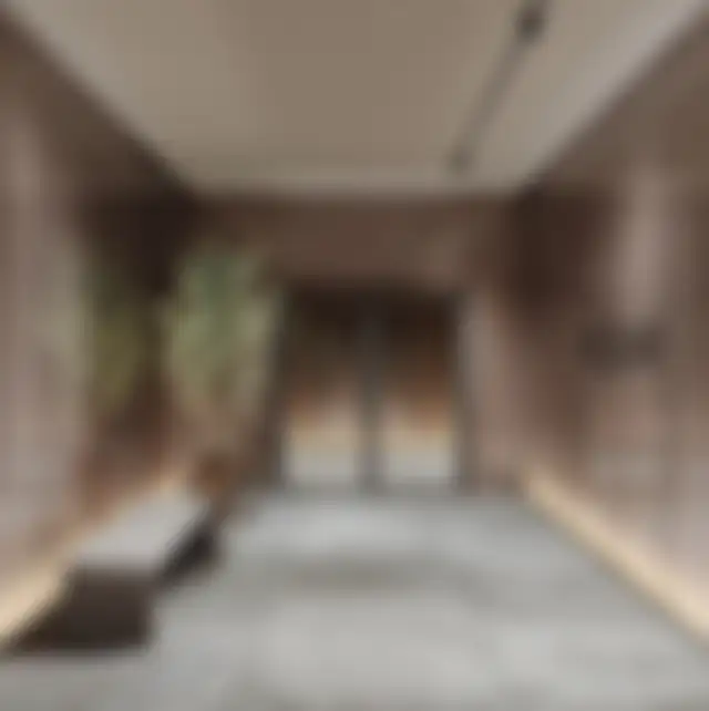 Авторские интерьеры входных групп продолжают концептуальную линию дома у воды Бродский: максимально открытые пространства с высокими потолками; светлые оттенки камня в сочетании медными элементами создают неповторимое восприятие интерьера. Использование в отделке природных фактур и паттернов формируют устойчивый ассоциативный ряд – свобода, спокойствие, отдых.
