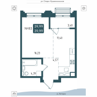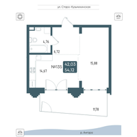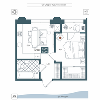 - 1 комнатная 41.78 м252-3550681-комнатные